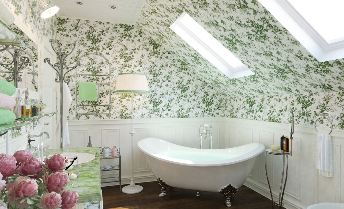 Выбор сантехники оставляем на ваш вкус. Однако помните – в таком интерьере будут неуместно смотреться современные ванны и умывальники с хромированными ручками и смесителями. Гораздо лучше выбрать классическую чугунную ванну на львиных ножках, а аксессуары подобрать в бронзовом или медном цвете. Не забудьте про декор – хорошо будет смотреться ковка. Ею можно отделать полочки и штанги для полотенец, раму зеркала, люстры и светильники. Если в ванной есть окно, повесьте на него симпатичные шторы в клетку или в цветочек.